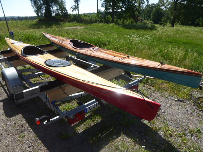 "Hej Björn Jag byggde en Njord 572 cm med höjt däck. <a href="https://boatbuildingpictures.batbyggeriet.eu/#collection/1c8cddc1-0721-47e1-8a63-a8ba0a8b2">Så här blev den</a> Sargen är under däck i ryggen och över däck efter höftbenet. Funkar väldigt bra för kunden med en VKV tävlings sits i. Kommissarie Morse ”jaga rött” skrov. Minimått på sargen 38 cm x52 cm så han sitter tajt och är ett med skrovet. Byggtid 120 timmar. Byggstart var efter påsk (som info byggdes en scullerbåt och lite annat parallellt, den sista levereras nästa helg – en Glen-L Zip runabout (men den tog 400 timmar). Det andra kajaken på bilden är den Frej L jag byggde förra våren.