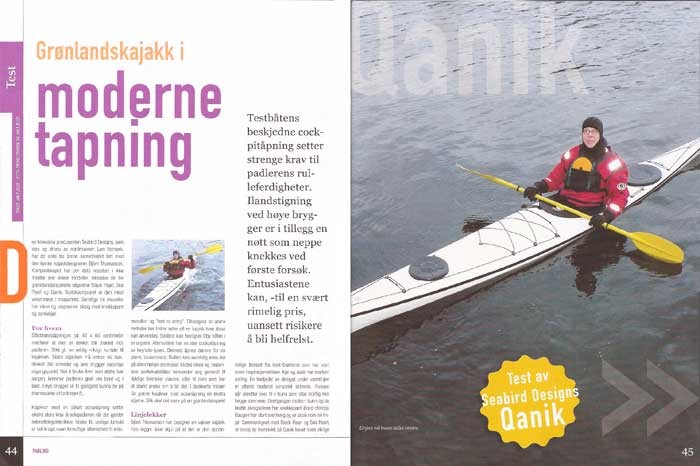 "Seabird og Björn Thomasson har grunn til å være förnøyd med Qanik. Glitrende respons gjør den til en virkelig artig lekekamerat. God komfort og bra lastevolum inviterer i tillegg til litt lengre turer ... Forholdet mellom pris og kvalitet er i begge tilfeller veldig bra. Her får man mye grønlandsinspirert kajakk for pengene."
