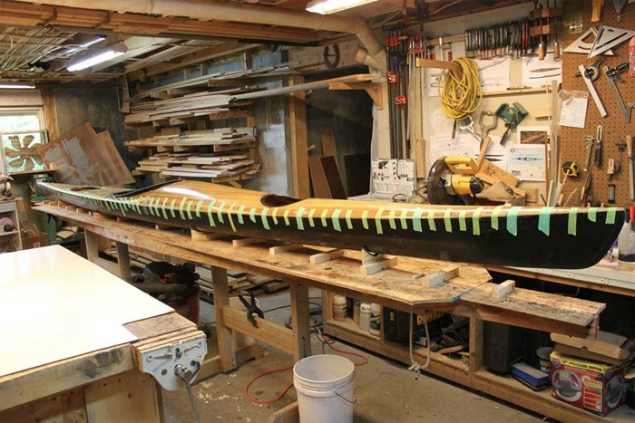 Dan Caouette i USA bygger just nu en havsracer för en kund. Med skrov och däck hoplimmade väger den 12 kg. Inte illa för en 6 meter lång kajak ;-)