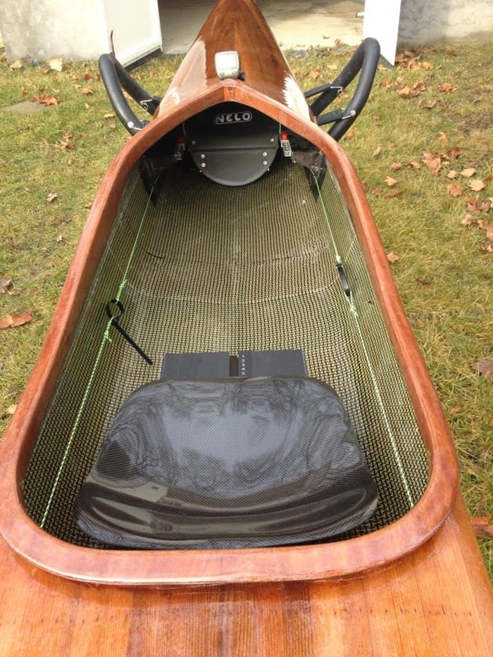 After about 10000 working hours my boat is finished. Unfortunately a little overweight, 14.4 kg, but as a first attempt, it is acceptable. Today I paddled for the first time MY Sea Racer, it runs very nicely.