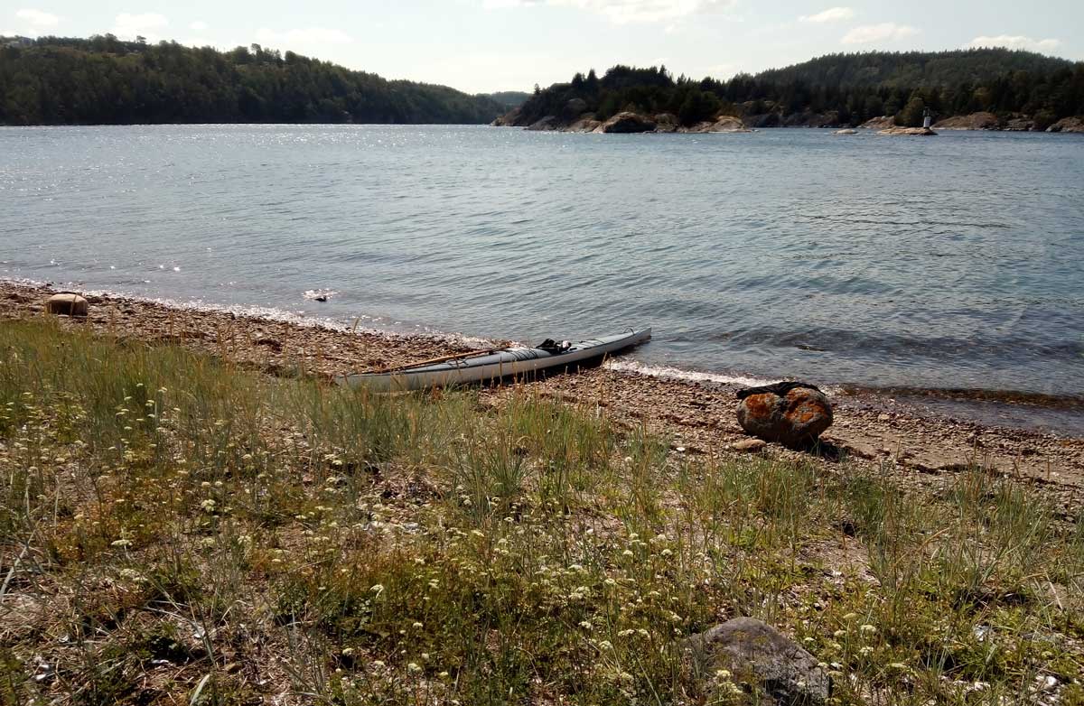 Sjösättningsviken var lite gyttjig, men det fanns gott om tid att paddla ut en bit i Hafstensfjorden för att bada, sola och fika